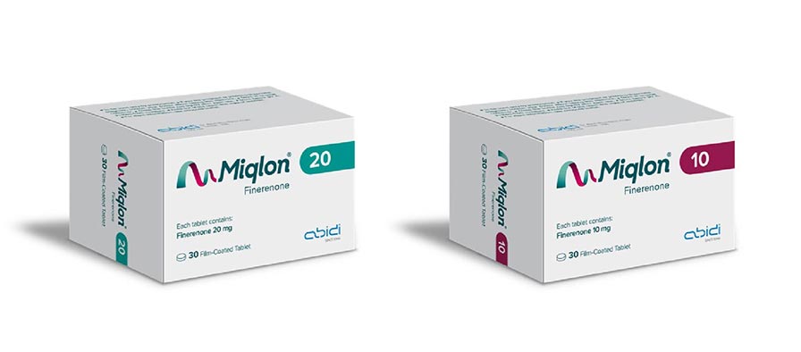 | مکانیسم عمل | میکلون® با مهار گیرنده های مینرالوکورتیکوئید، اثرات مضر ناشی از عملکرد بیش از حد آلدوسترون و کورتیزول را کاهش داده و با کاهش التهاب و فیبروز در بافت کلیه و قلب، از پیشرفت بیماری مزمن کلیوی و نارسایی قلبی جلوگیری می کند. این دارو غیراستروئیدی است و نسبت به داروهای استروئیدی، عوارض هورمونی و احتمال افزایش پتاسیم کمتری دارد. |